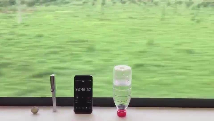 有了速度,乘客最担心的当属舒适度。据了解,21日,"复兴号"G1次列车在10点22分准时抵达济南西站,北京到济南时长1小时22分钟,列车在运行和刹车时都很平稳。有位乘客在车厢内做了实验,将一瓶矿泉水倒置在窗沿上,瓶内水面平稳,将钢笔和硬币立起在桌面上,也不会歪倒。
