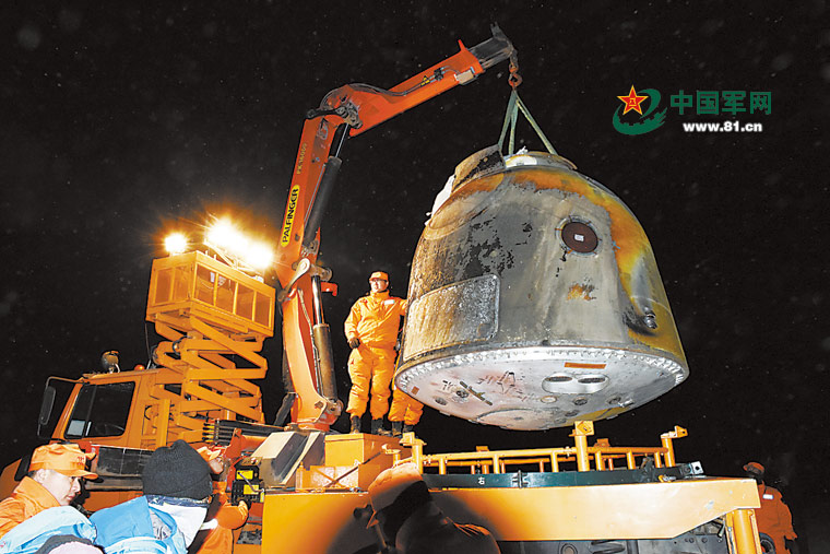 13时43分,直升机上的定向仪收到返回舱信标机传来的信号。